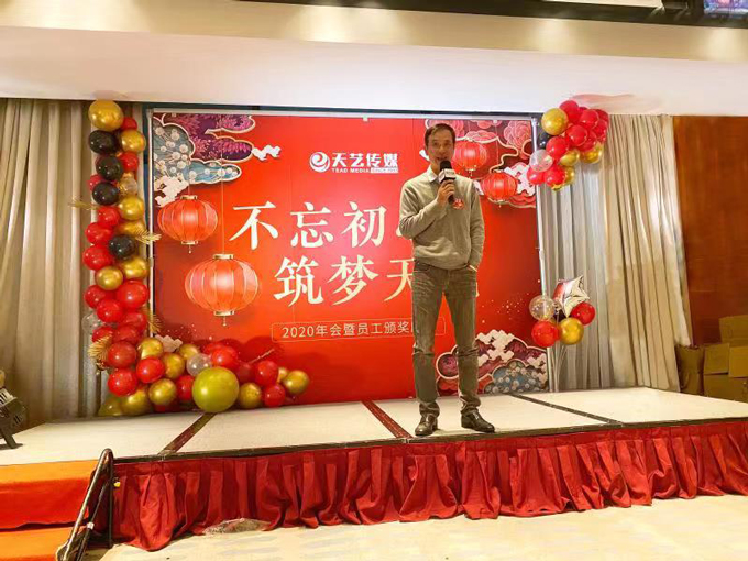 2020年會慶典上,天藝傳媒董事長林少敏與大家一起回顧天藝傳媒26年一路走來的艱辛歷程,感謝所有天藝員工們的共同努力,感謝全行業(yè)的客戶鼎力支持。