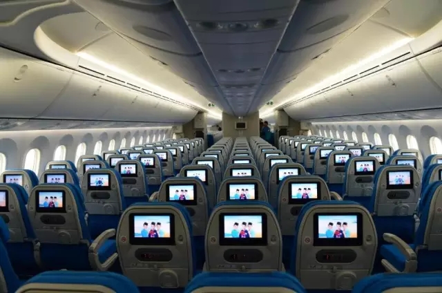 據(jù)介紹,B787-9可以搭載287名旅客,比B787-8的237個座位多出21%。在客艙布局方面取消了頭等艙的座位,改由30個商務(wù)艙和257個經(jīng)濟(jì)艙組成。